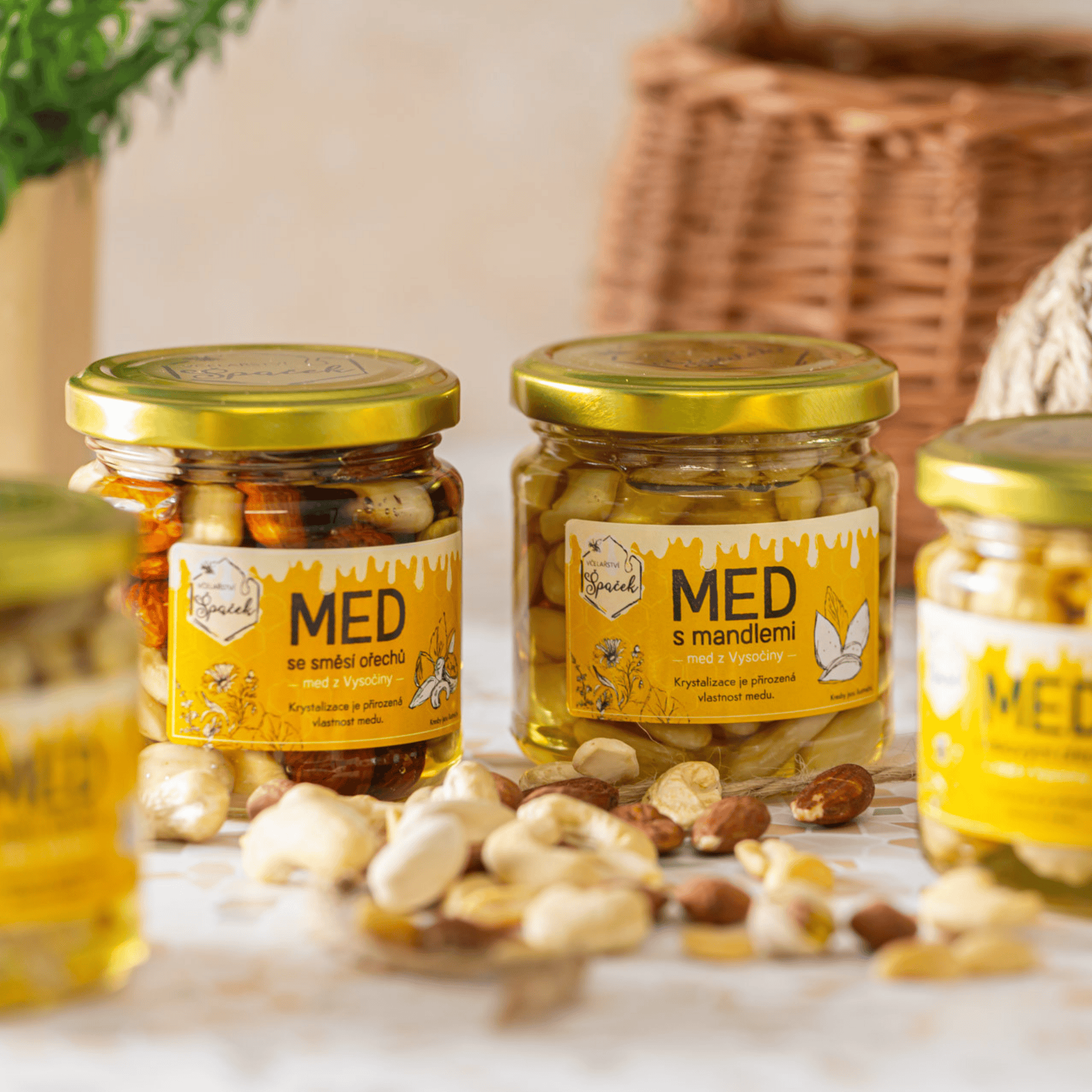 - Dárková balení a ochucené medy — rychlý a přírodní dárek pro hosty a přátele.