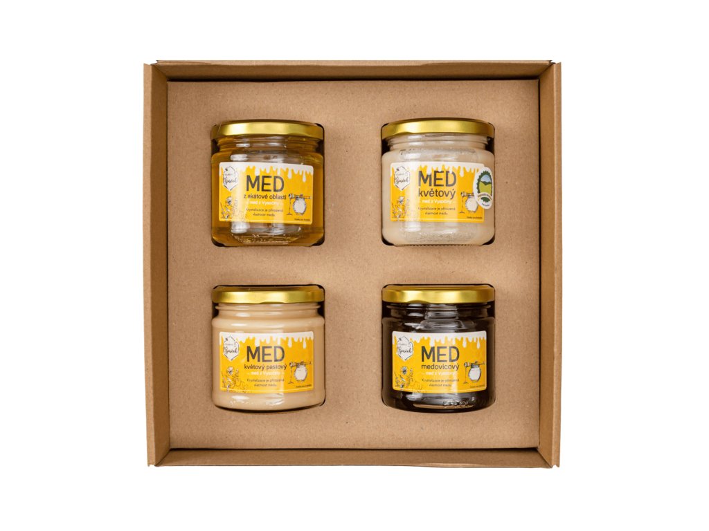 - Elegantní dárková krabice se 4 druhovými medy po 250 g