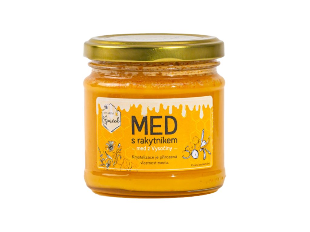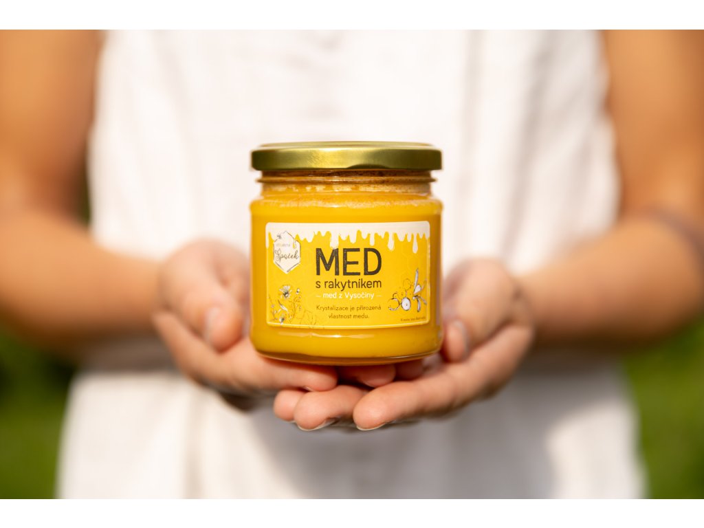 Med s rakytníkem spojuje jemnou sladkost českého květového pastovaného medu s osvěžující nakyslou chutí rakytníku. Díky obsahu vitamínu C a antioxidantů je tento med nejen lahodný, ale i zdravý doplněk vaší stravy. Perfektní do čaje, na pečivo i jako originální dárek.
