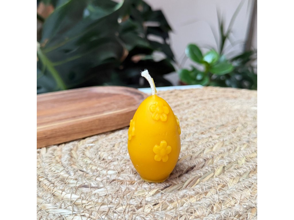 Jemná svíčka ve tvaru velikonočního vajíčka s květinovým motivem, vyrobená ze 100% pravého včelího vosku. Elegantní přírodní dekorace s autentickou medovou vůní.